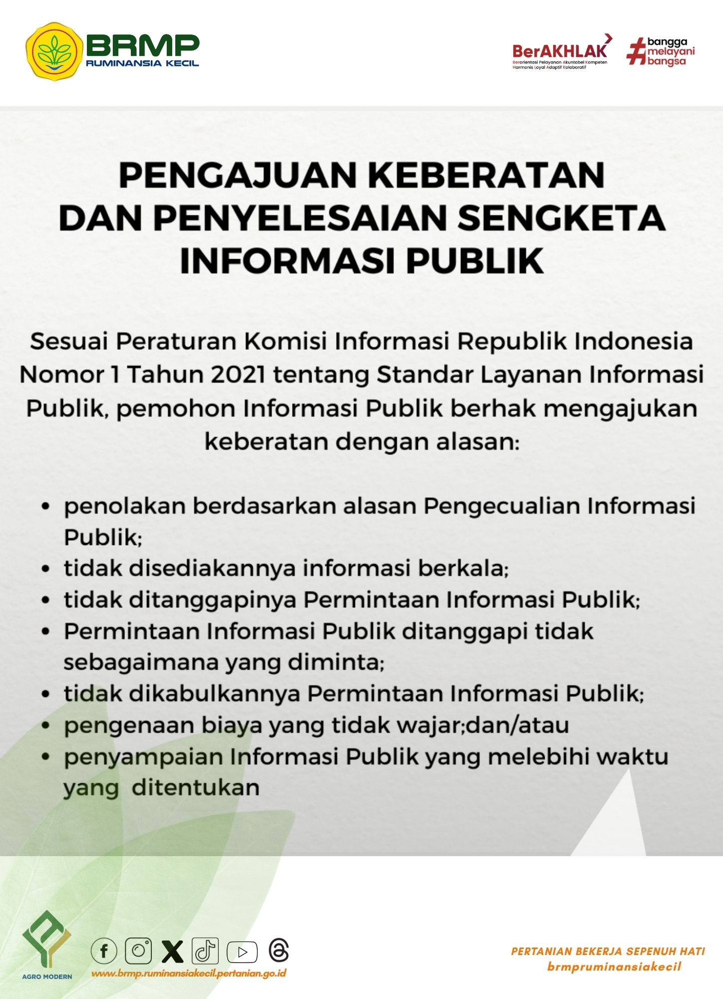 Setiap pemohon informasi publik dapat mengajukan keberatan secara tertulis kepada atasan Pejabat Pengelola Informasi dan Dokumentasi dengan alasan sebagaimana ditetapkan dalam pasal 35 Undang-Undang Nomor 14 Tahun 2008. Keberatan diajukan oleh Pemohon Informasi Publik dalam jangka waktu paling lambat 30 (tiga puluh) hari kerja setelah yang bersangkutan menemukan alasan keberatan.